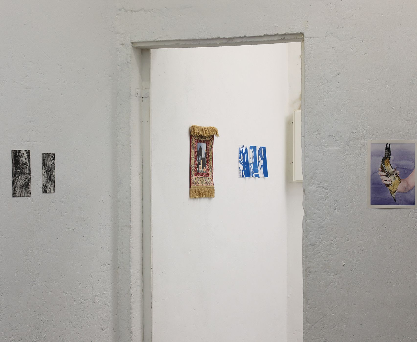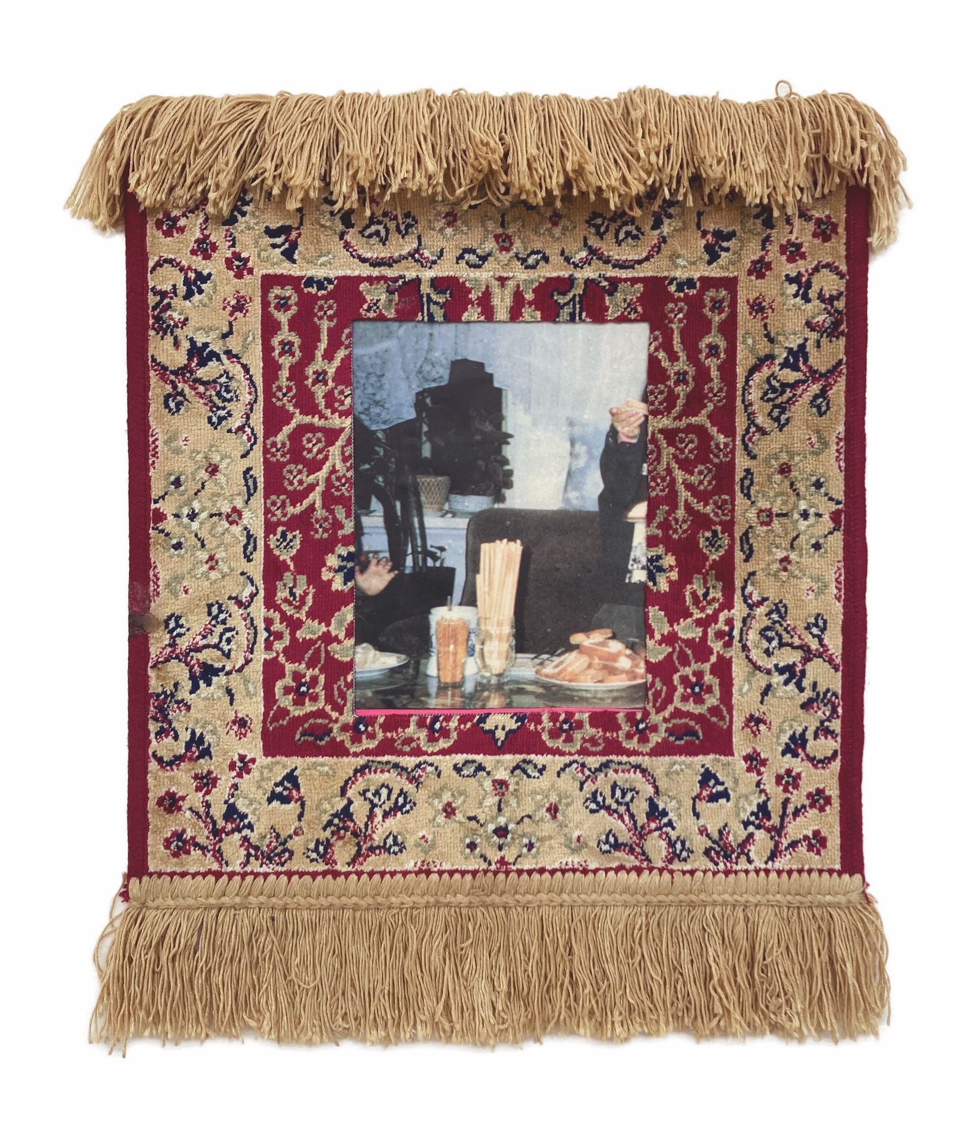 | Technology | Photo from magazine, felt-tip pen, oriental rug |